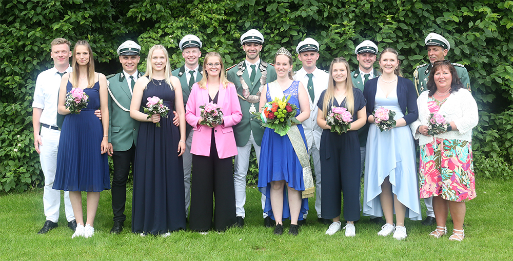 Schützenkönig Nils Raesfeld mit Königin Jenny HölscherHofstaat